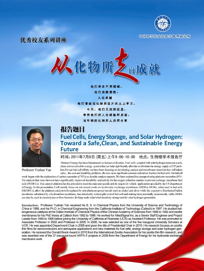 报告题目:Fuel Cells, Energy Storage, and Solar Hydrogen: Toward a Safe, Clean, and Sustainable Energy Future