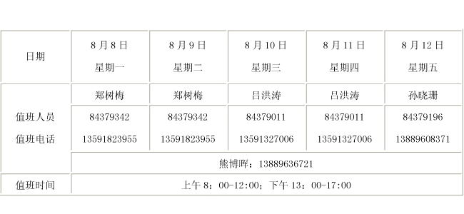 研究生部2011年暑期值班安排