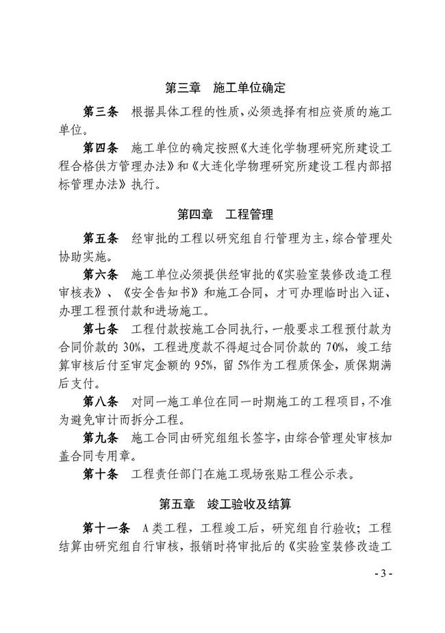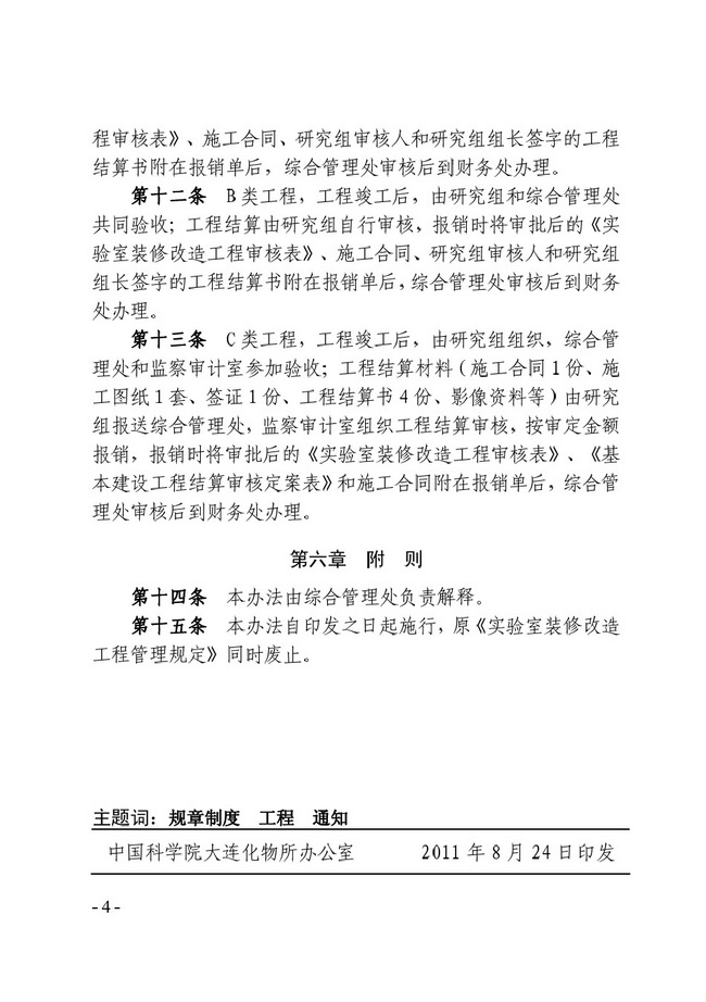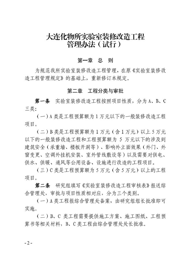 关于印发《大连化物所实验室装修改造工程管理办法(试行)》的通知