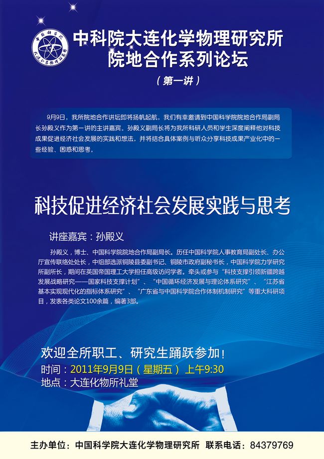 关于举办大连化物所院地合作系列讲坛第一讲《科技促进经济社会发展实践与思考》的通知