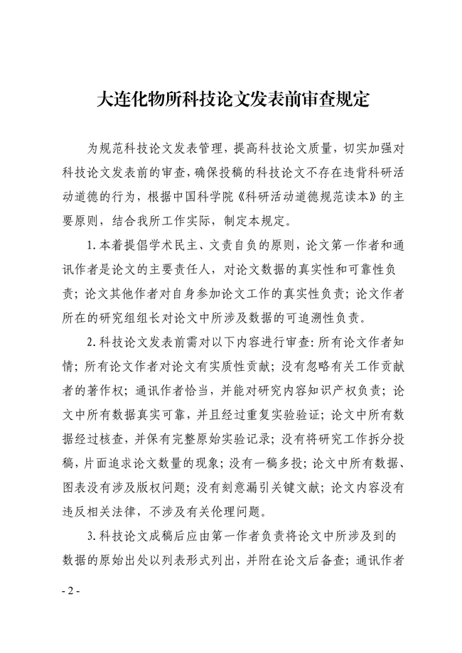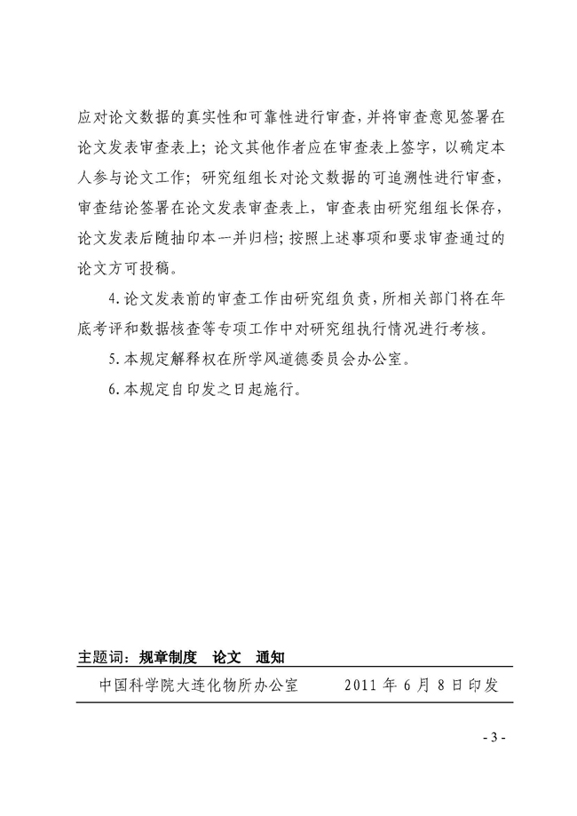 关于印发《大连化物所科技论文发表前审查规定》的通知