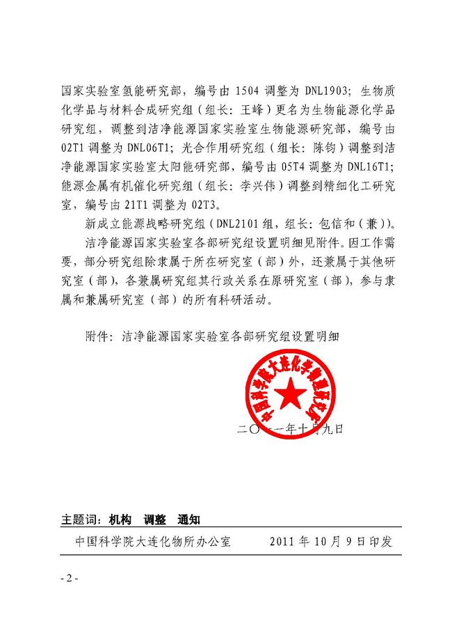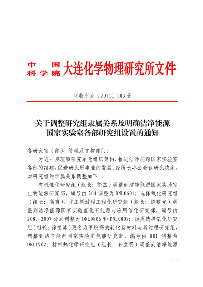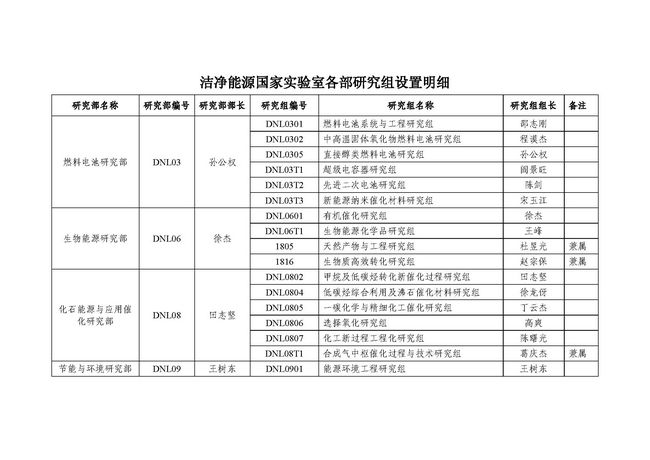 关于调整研究组隶属关系及明确洁净能源国家实验室各部研究组设置的通知