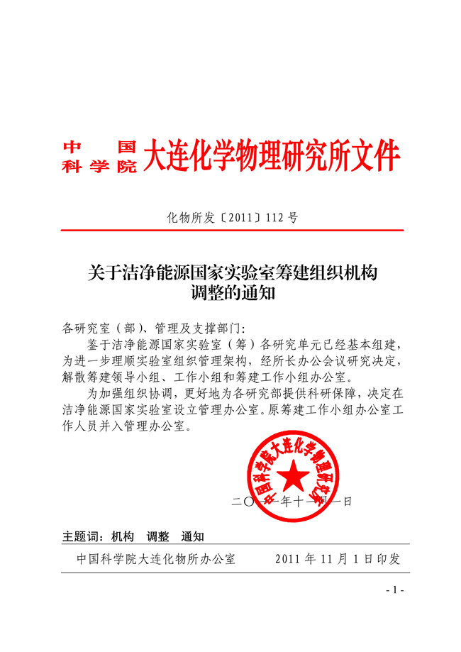 关于洁净能源国家实验室筹建组织机构调整的通知