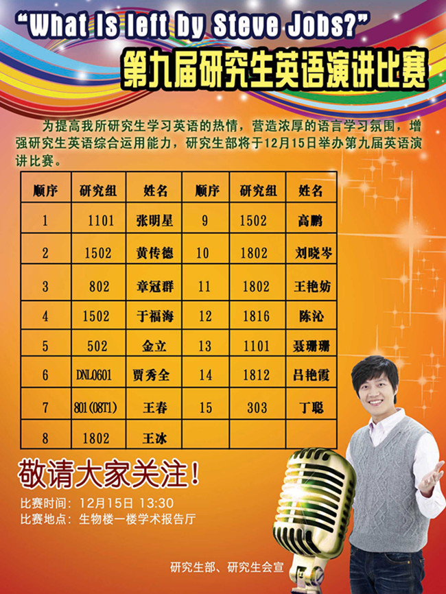 发布时间:2011-12-12 | 供稿部门:研究生部