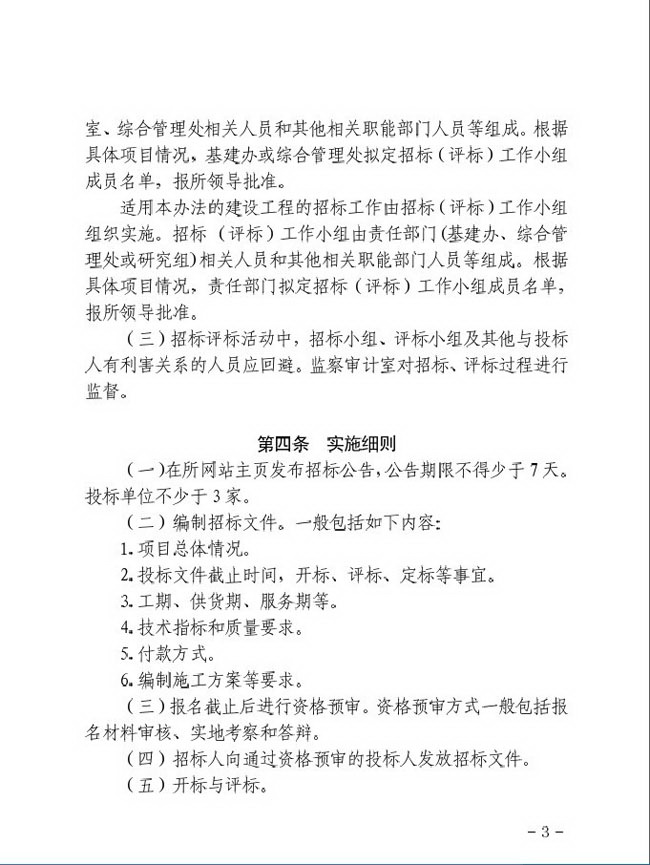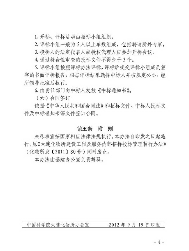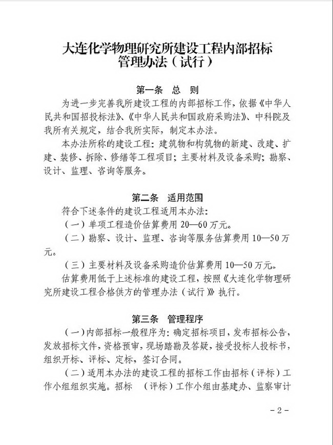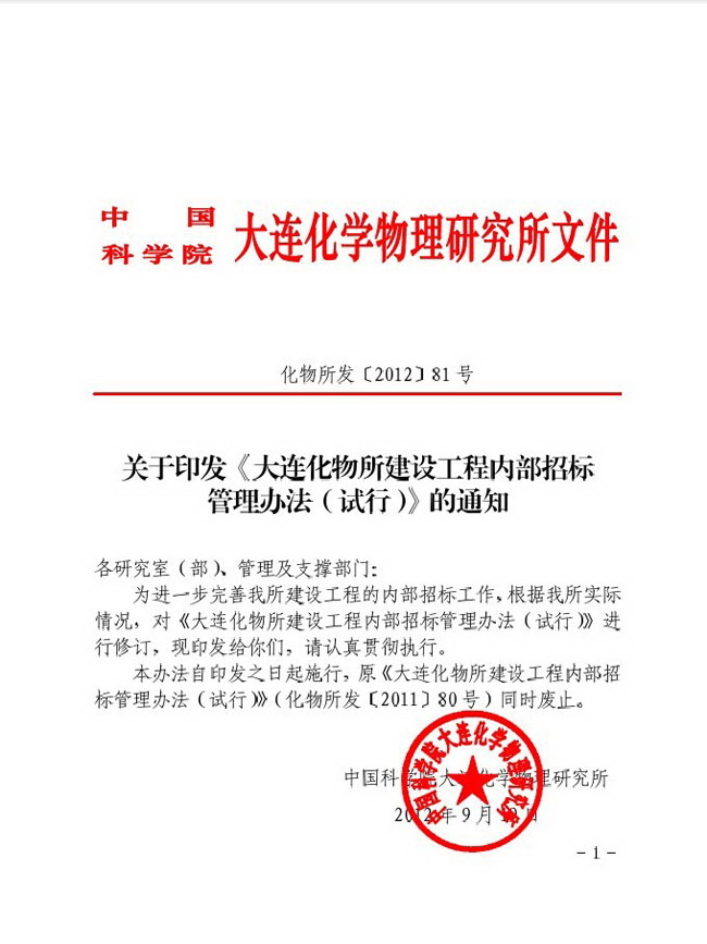 关于印发《大连化物所建设工程内部招标管理办法(试行)》的通知