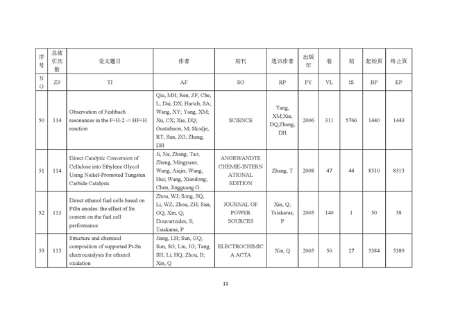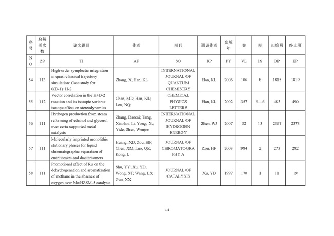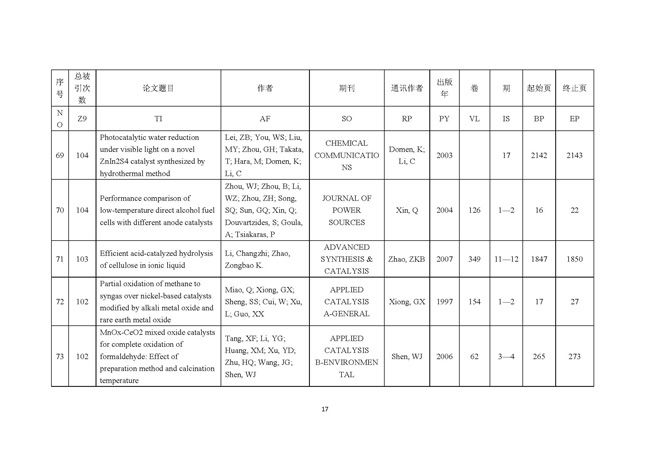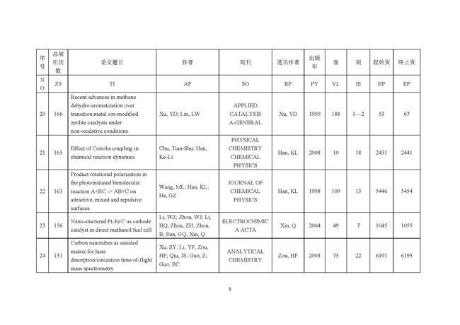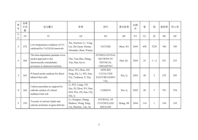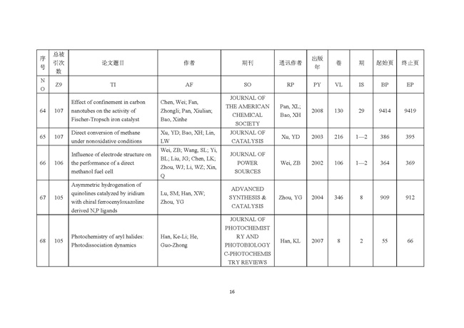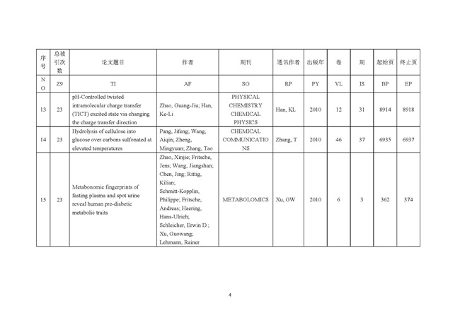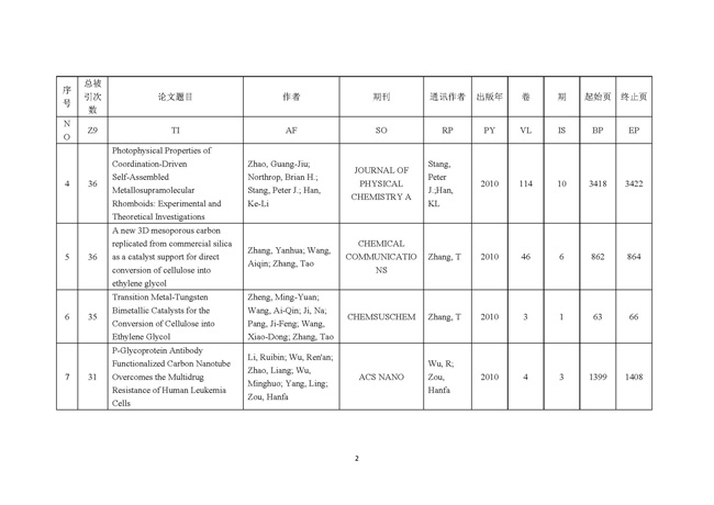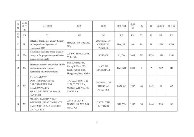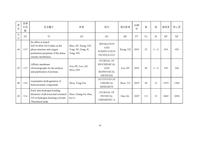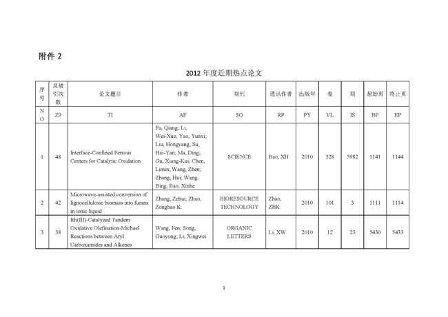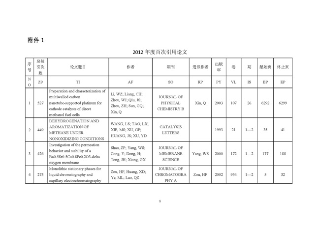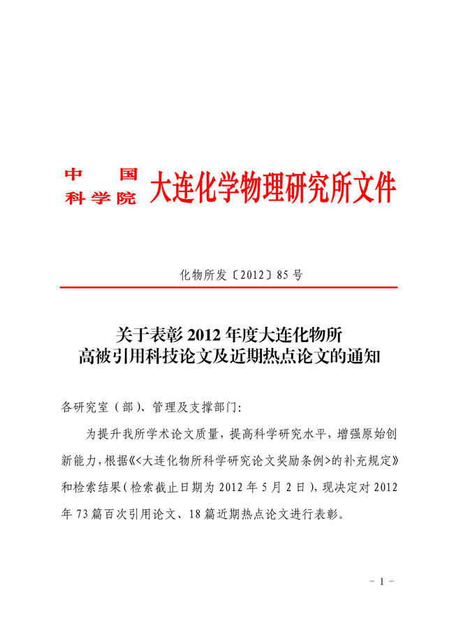 关于表彰2012年度大连化物所高被引用科技论文及近期热点论文的通知