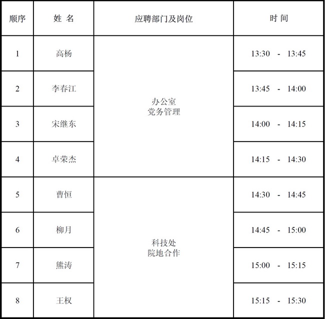 兹定于2012年10月15日(周一)13:30在新研究生大厦十五楼第一会议室举行入所招聘答辩会,欢迎所内职工和研究生参加。 附:答辩时间安排表