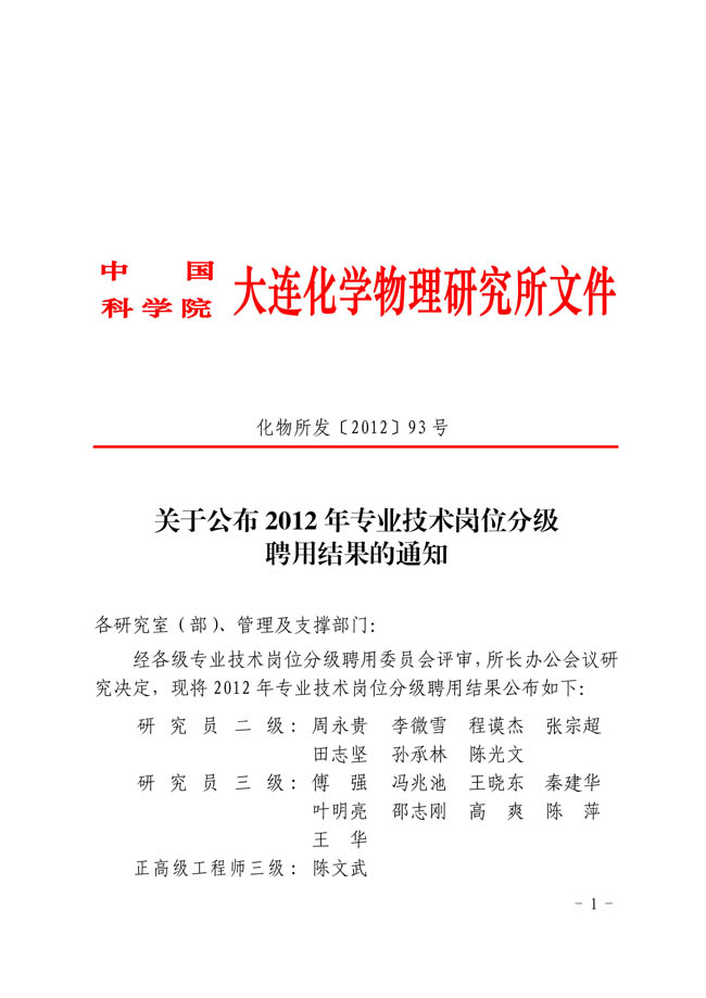 关于公布2012年专业技术岗位分级聘用结果的通知