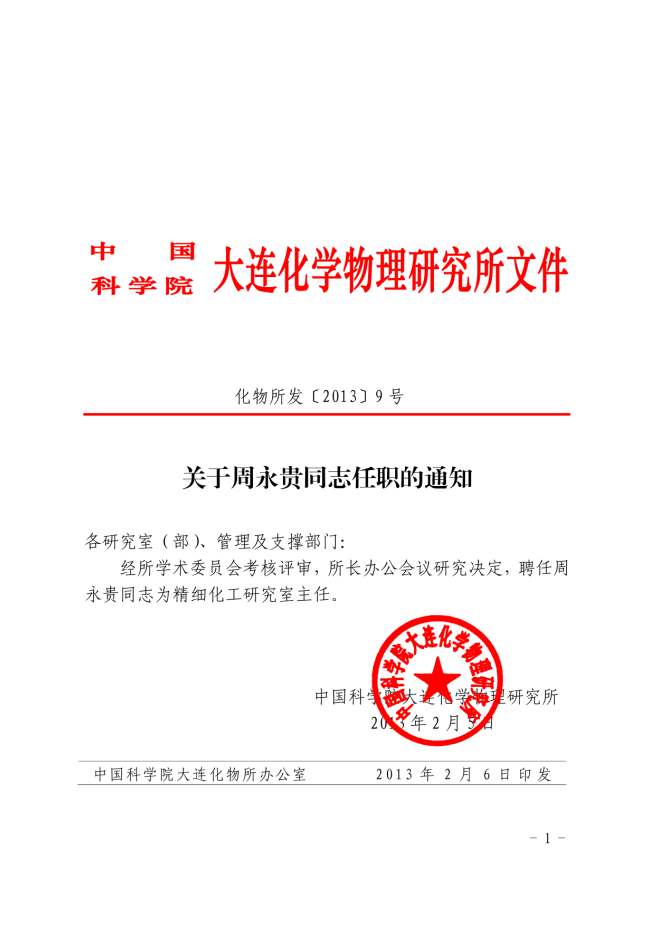 关于周永贵同志任职的通知