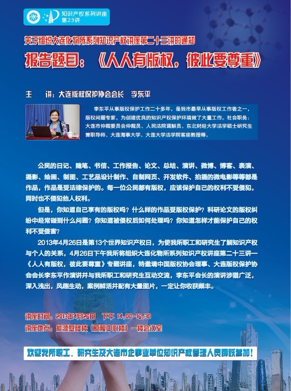 关于组织大连化物所系列知识产权讲座第二十三讲的通知