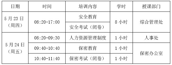 人事处将为所有新入所人员建立《培训记录卡》,记录参加安全及保密培训情况。
