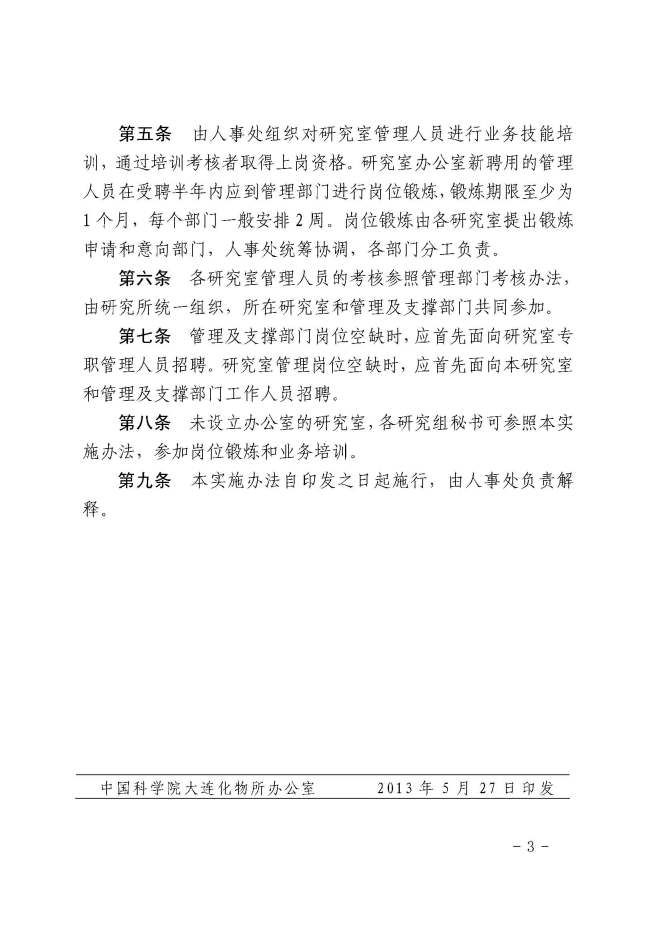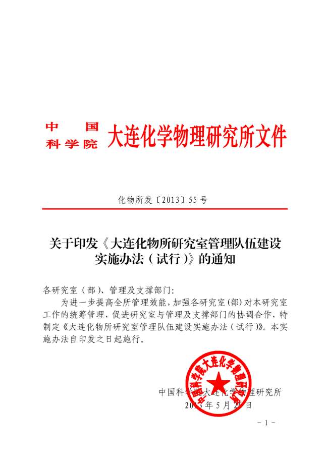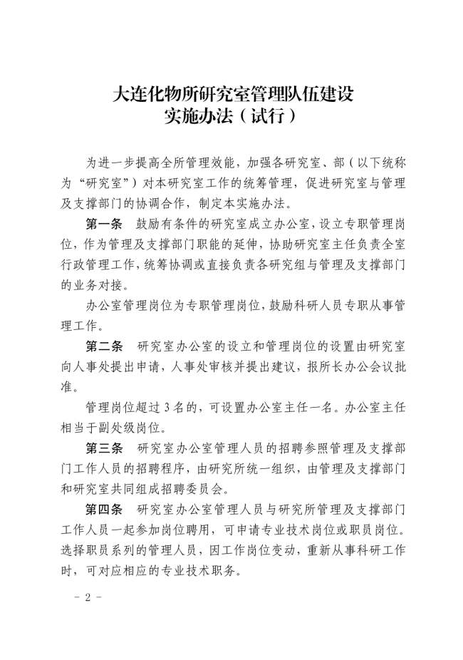 关于印发《大连化物所研究室管理队伍建设实施办法(试行)》的通知