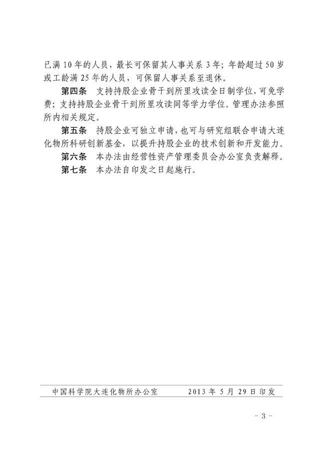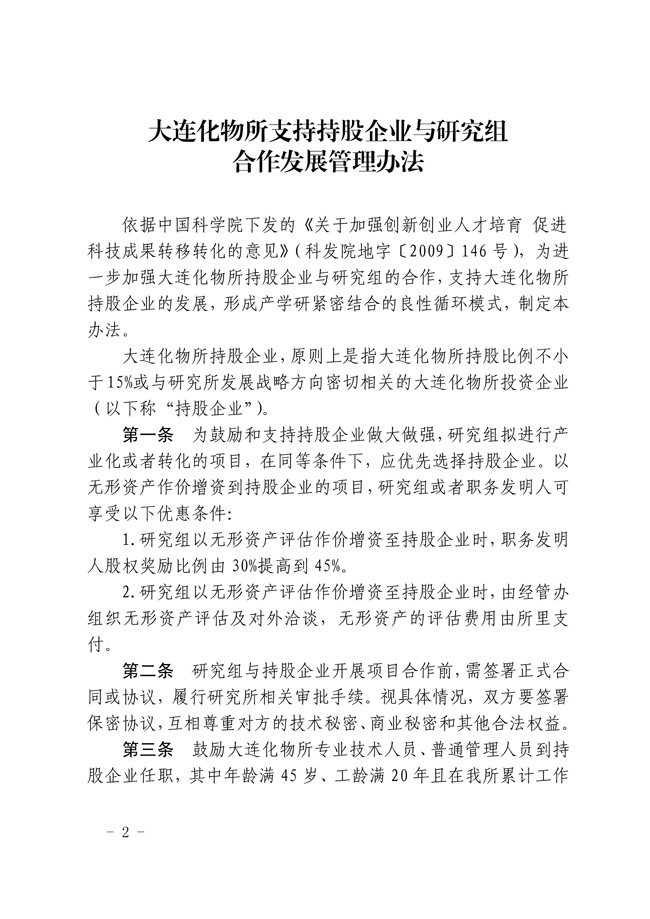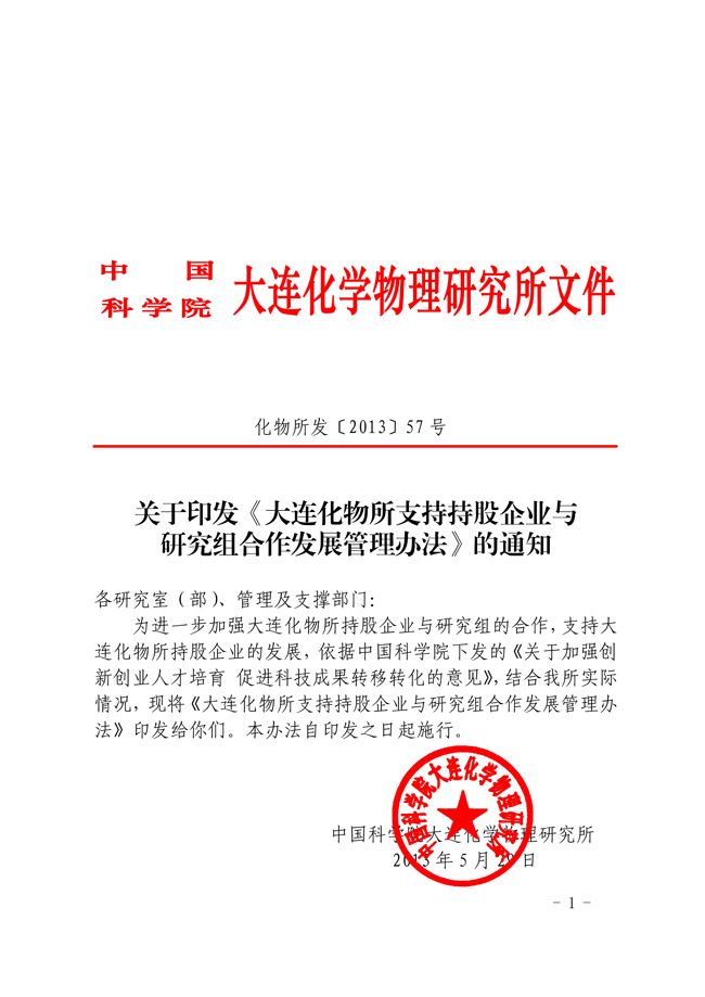关于印发《大连化物所支持持股企业与研究组合作发展管理办法》的通知