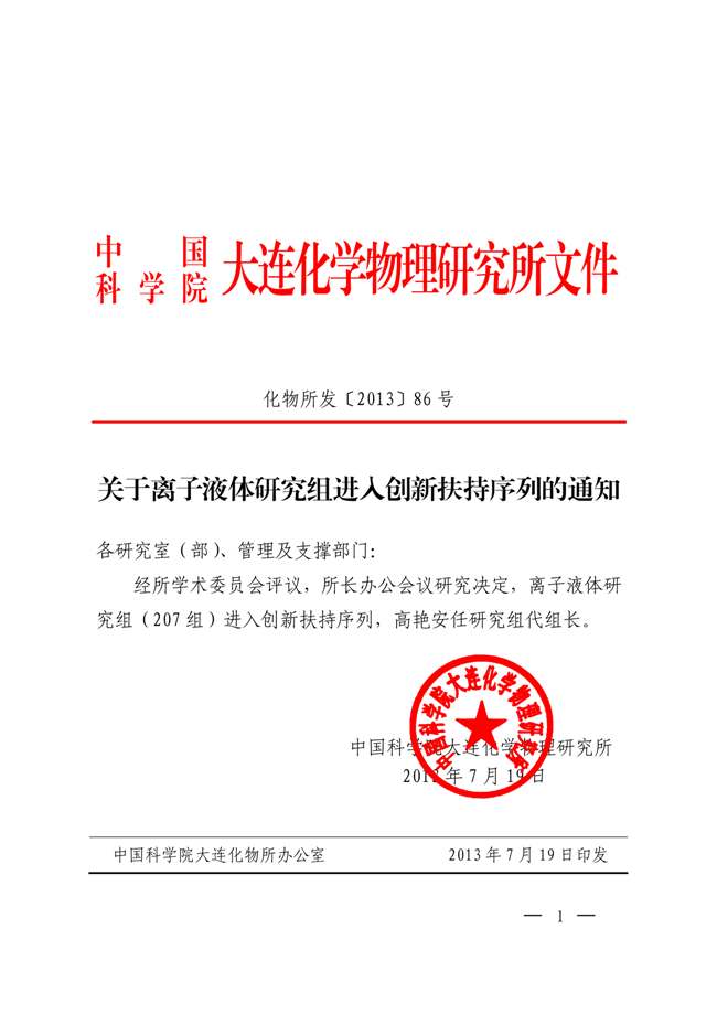 关于离子液体研究组进入创新扶持序列的通知