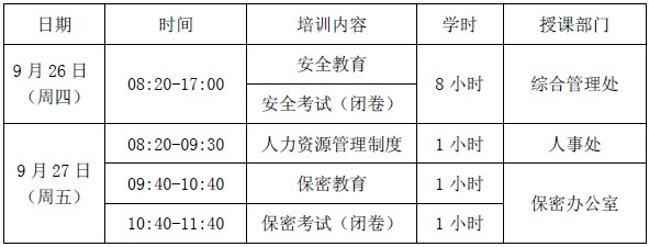 人事处将为所有新入所人员建立《培训记录卡》,记录参加安全及保密培训情况。