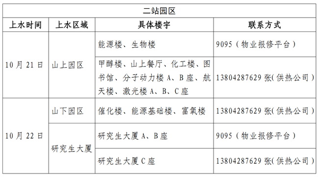 对于实验室内的重要仪器及设备,请各研究组提前做好防水措施,避免漏水带来损失。具体楼宇上水时间及联系方式如下: