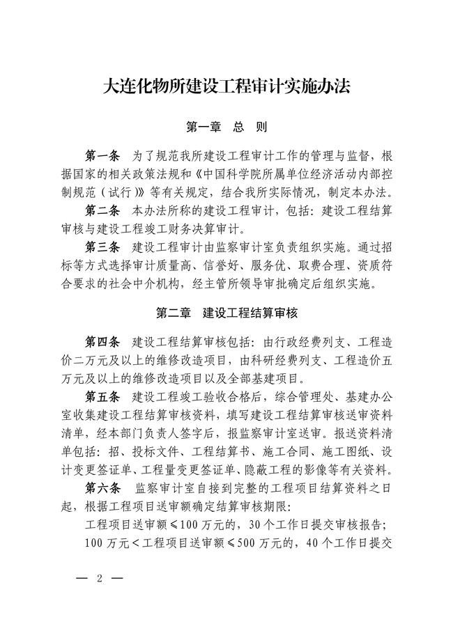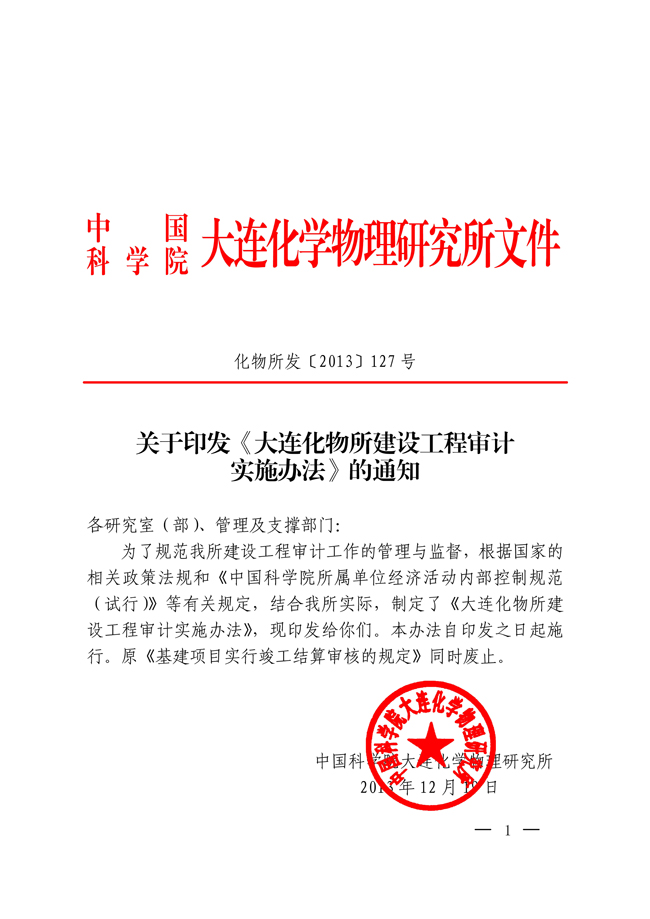 关于印发《大连化物所建设工程审计实施办法》的通知