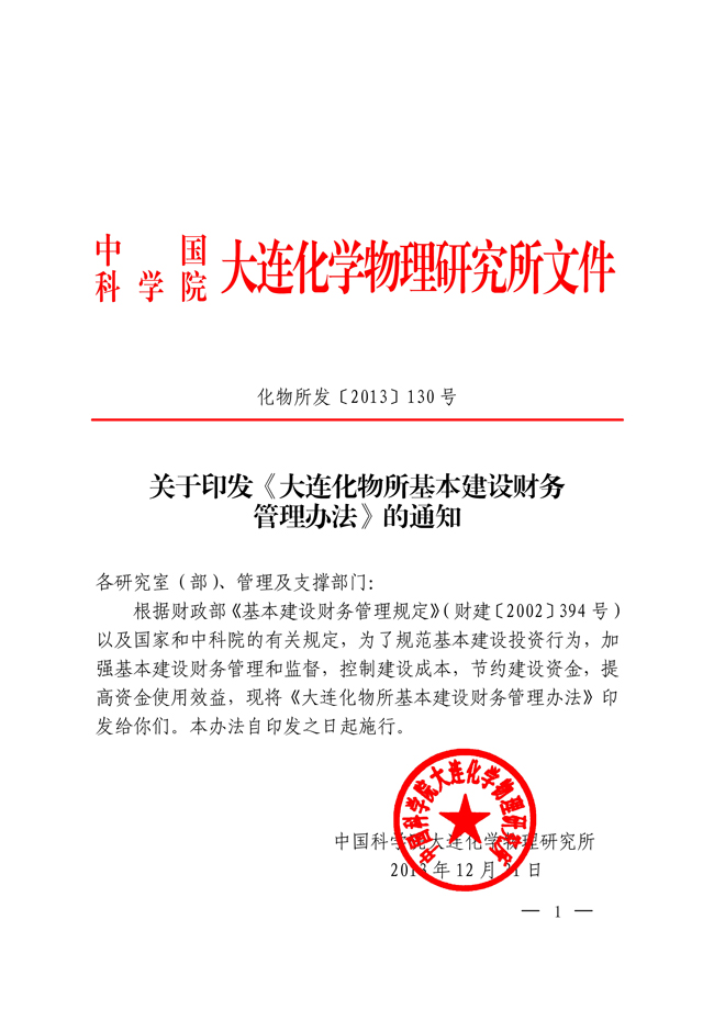 关于印发《大连化物所基本建设财务管理办法》的通知