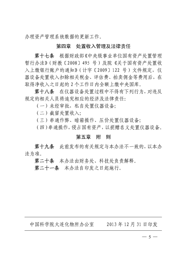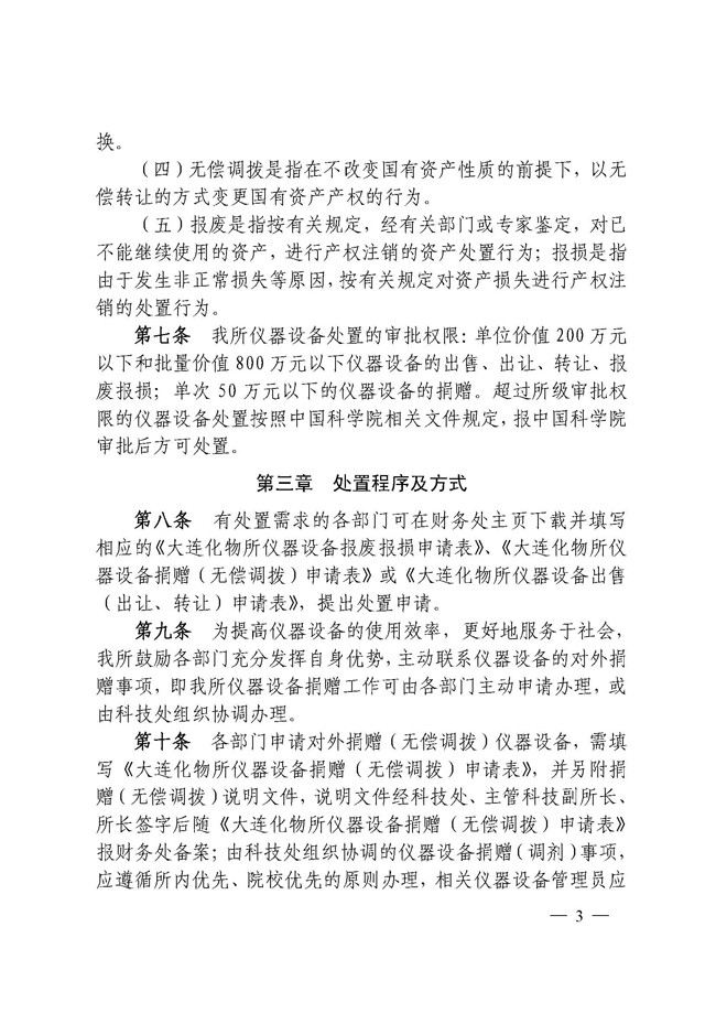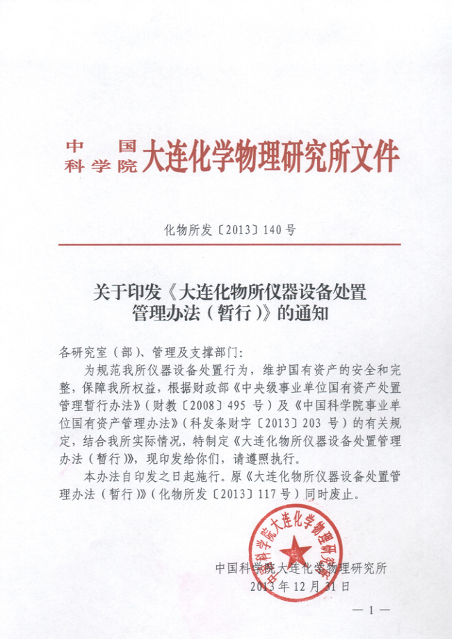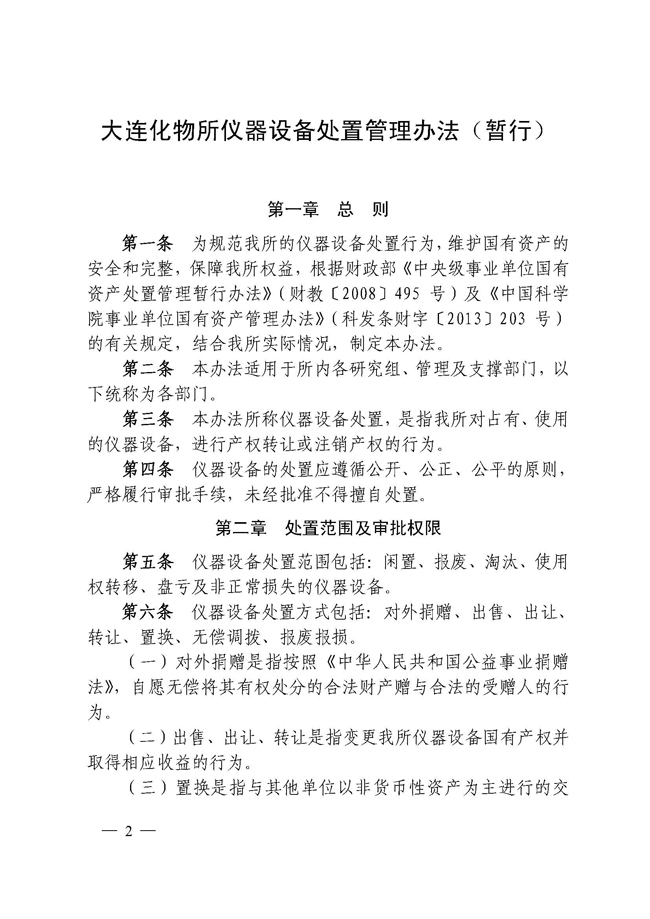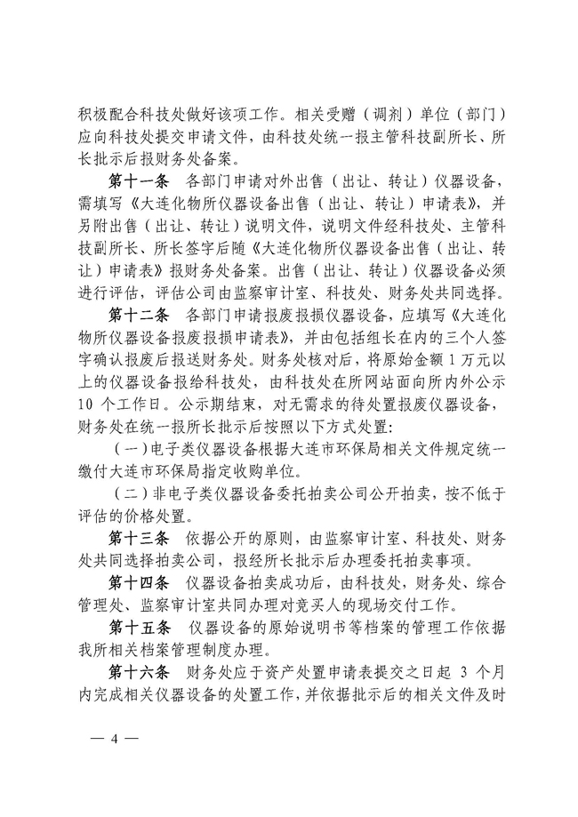 关于印发《大连化物所仪器设备处置管理办法(暂行)》的通知