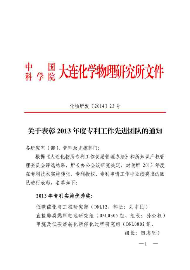 关于表彰2013年度专利工作先进团队的通知