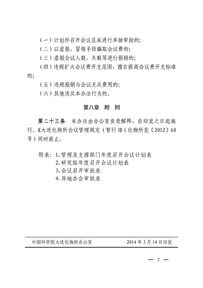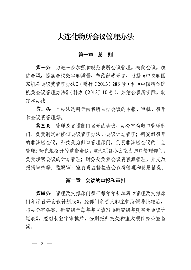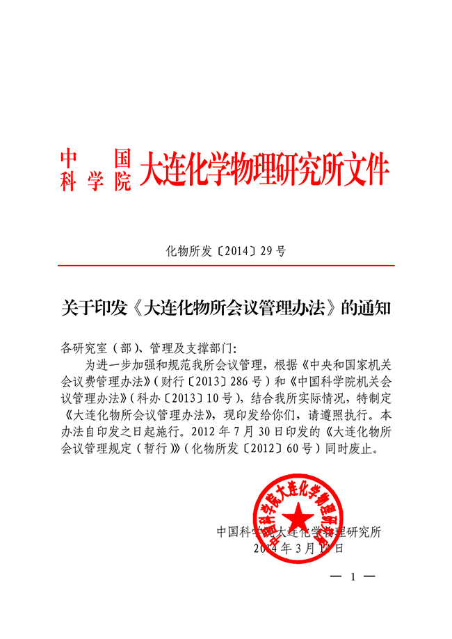 关于印发《大连化物所会议管理办法》的通知