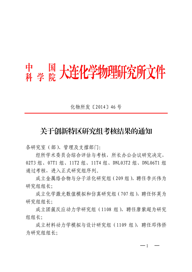 关于创新特区研究组考核结果的通知