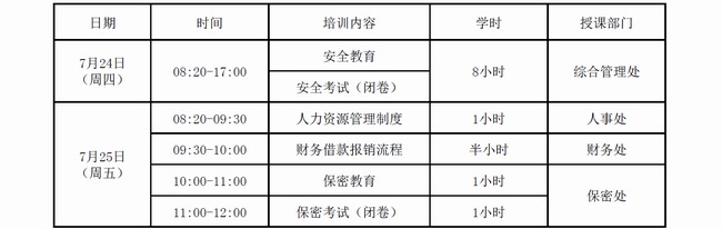 所有新入所人员均需参加入所安全、保密培训,不得以任何理由缺席。