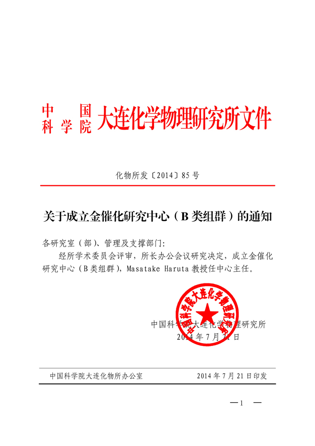 关于成立金催化研究中心(B类组群)的通知