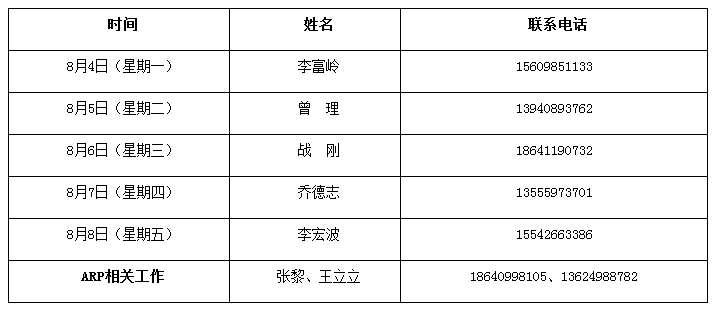 为便于全所同志暑假期间联系网络中心相关工作,现公布网络中心相关人员联系方式,如有需要,请提前与当日值班人员取得联系,我们将及时提供支持与帮助。
