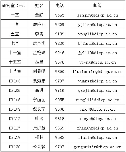 现将各研究室(部)专业技术岗位分级评审组织人员名单及联系方式公布如下,研究室(部)申报二级、三级、五级、六级、八级、九级、十一级岗位的审核表报送到各研究室(部)评审组织人员。