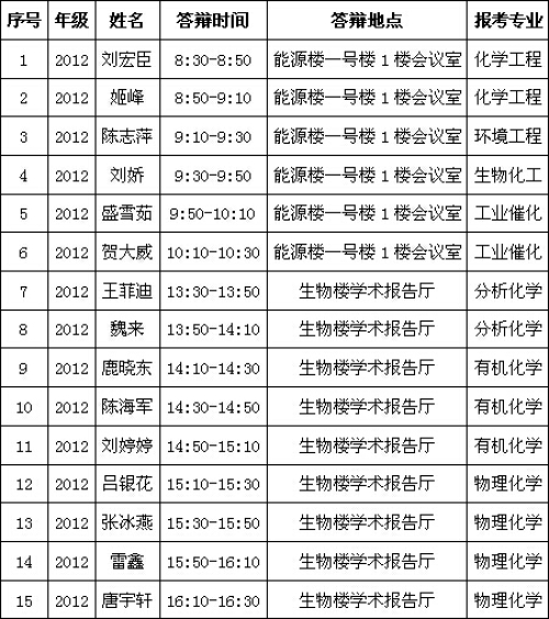 每位同学答辩时间12分钟,评委提问及讨论时间8分钟。请各位同学认真准备,于10月29日前,将答辩ppt发送至yanghua@dicp.ac.cn