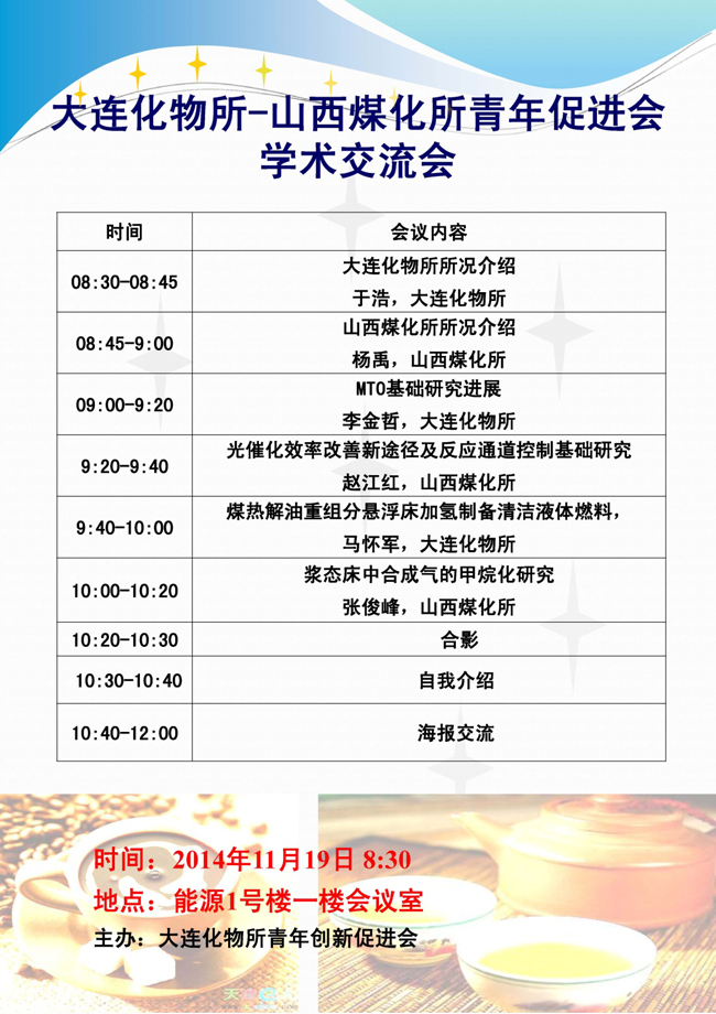 为促进我所与山西煤化所青年学者之间交流,加强学科交叉融合,特举办大连化物所-山西煤化所青年促进会学术交流会。现将有关事宜通知如下: