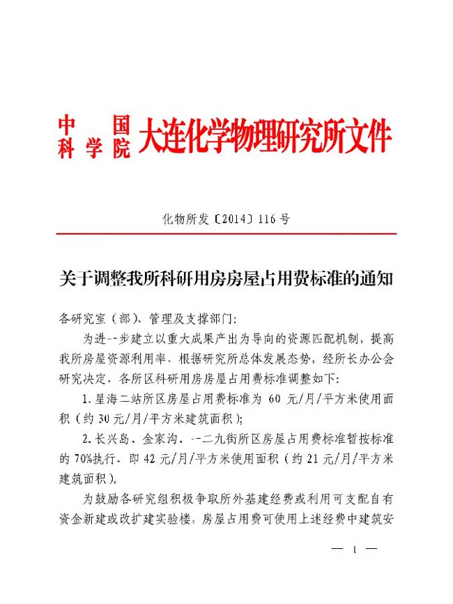 关于调整我所科研用房房屋占用费标准的通知