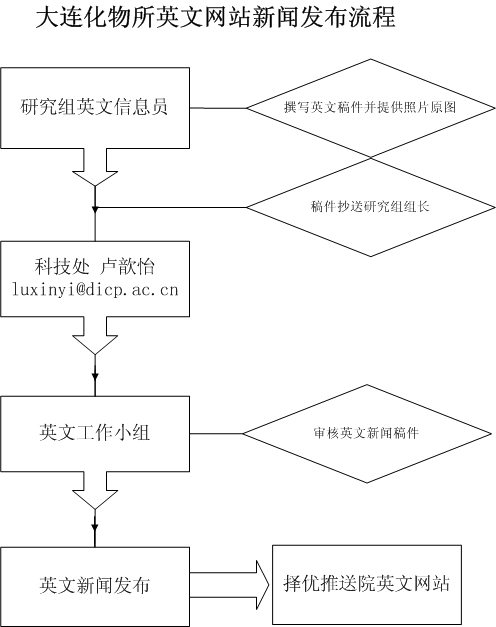 为保证我所英文网站信息和稿件质量,请各部门网站信息员在提供英文稿件时务必提供新闻的宽幅原版照片,并将稿件发送邮件至科技处。(卢歆怡:luxinyi@dicp.ac.cn,9175)