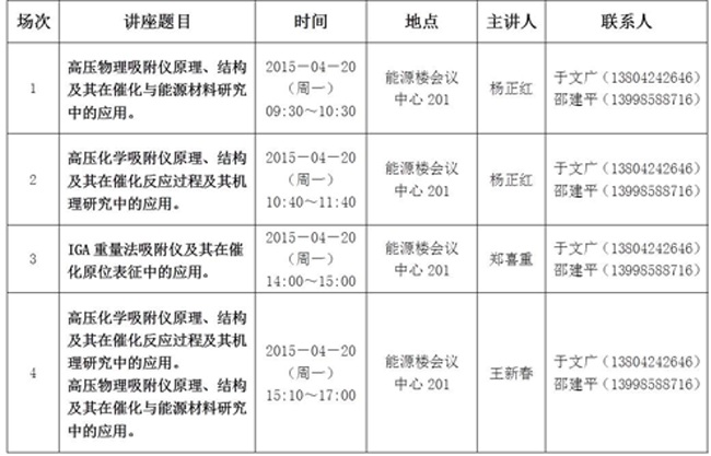 欢迎所内相关研究组的职工和研究生踊跃参加并提出您对所介绍吸附仪器在功能和应用方面的实际需求意见。