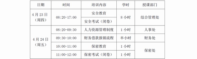 人事处将为所有新入所人员建立《培训记录卡》,记录参加安全及保密培训情况。