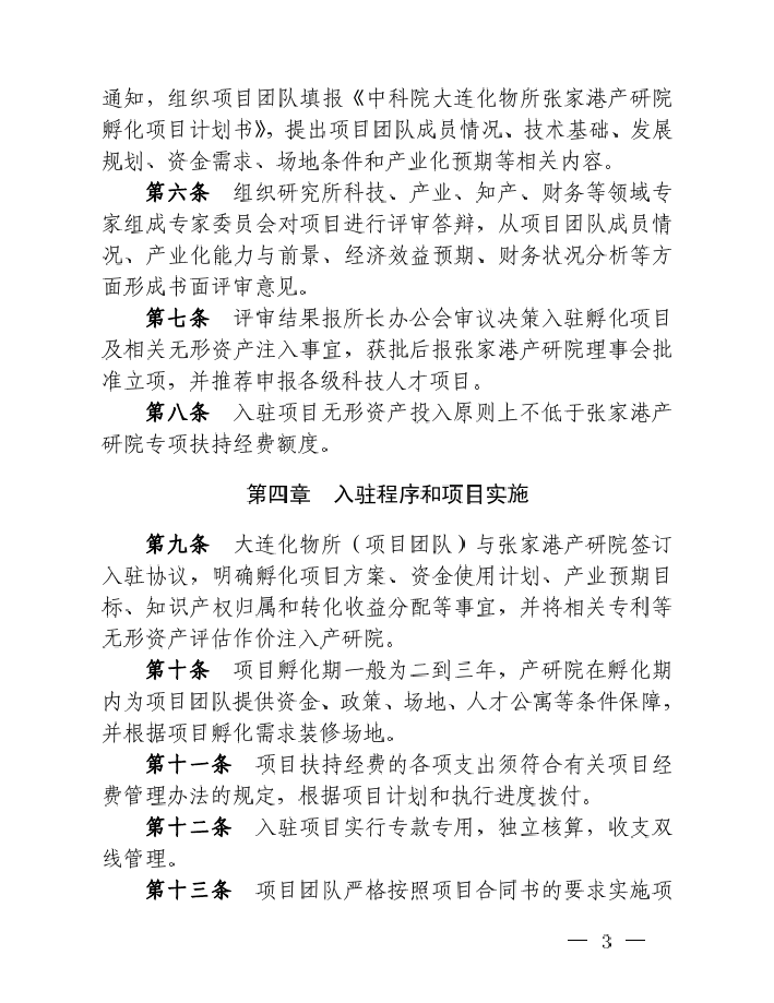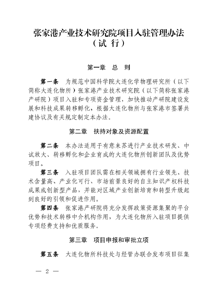 文件下载:大连化物所张家港产业技术研究院项目入驻管理办法