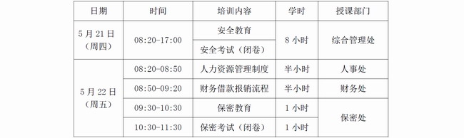 人事处将为所有新入所人员建立《培训记录卡》,记录参加安全及保密培训情况。