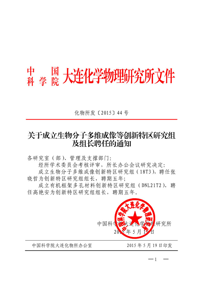 关于成立生物分子多维成像等创新特区研究组及组长聘任的通知