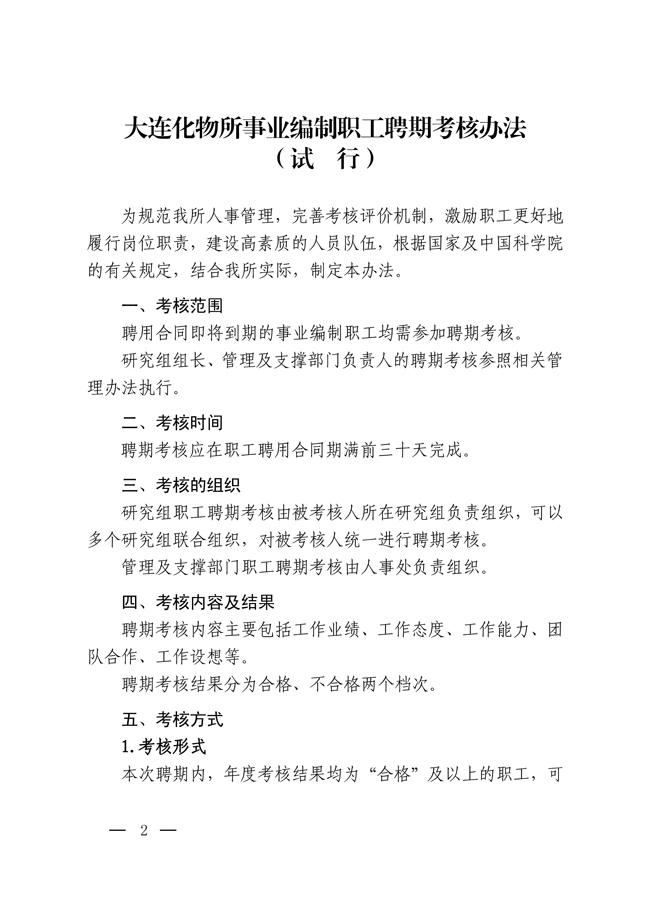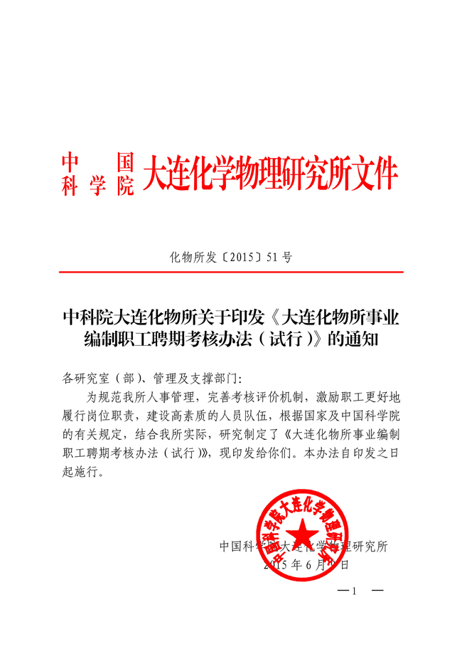 中科院大连化物所关于印发《大连化物所事业编制职工聘期考核办法(试行)》的通知