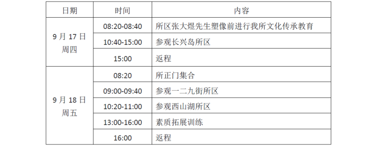 1、9月17日早瞻仰张大煜先生塑像暨我所文化传承教育活动环节要求全体新职工、博士后及新生参加。(名单见附件,无需报名。)