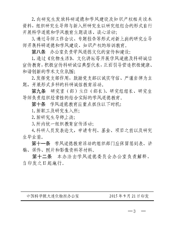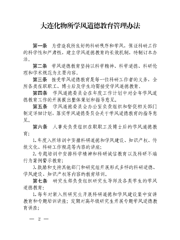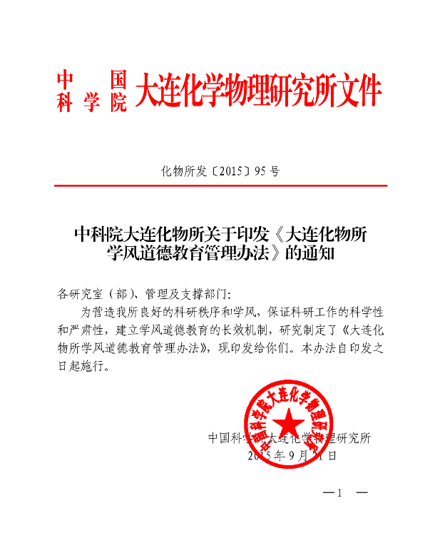 关于印发《大连化物所学风道德教育管理办法》的通知