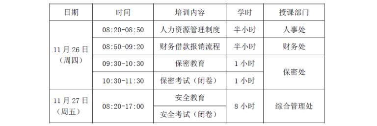 人事处将为所有新入所人员建立《培训记录卡》,记录参加安全及保密培训情况。