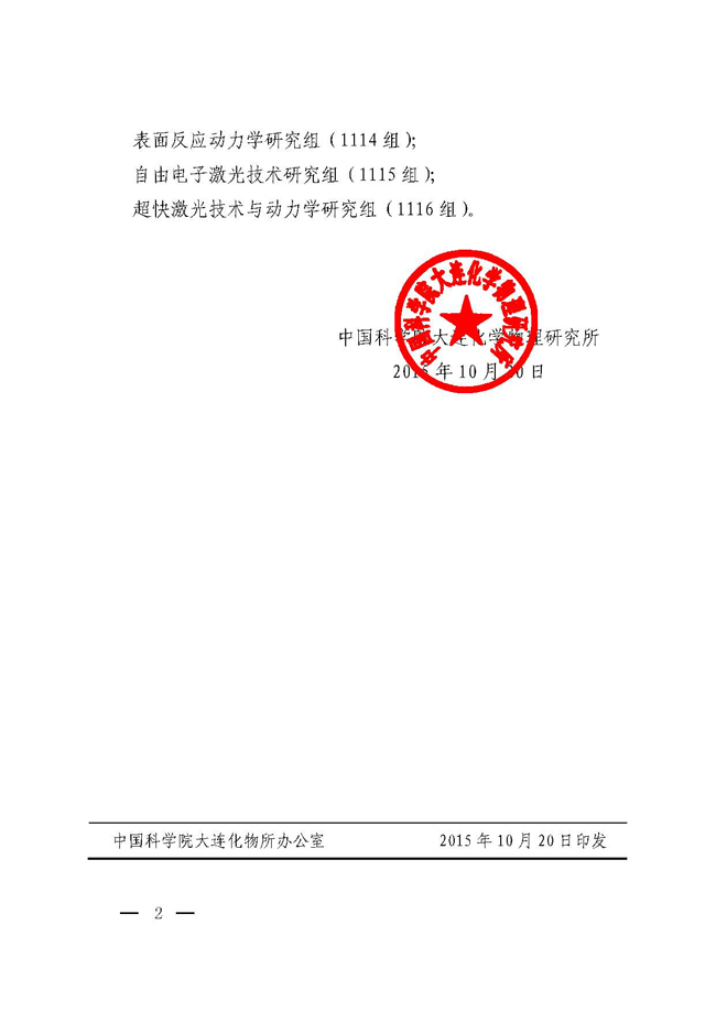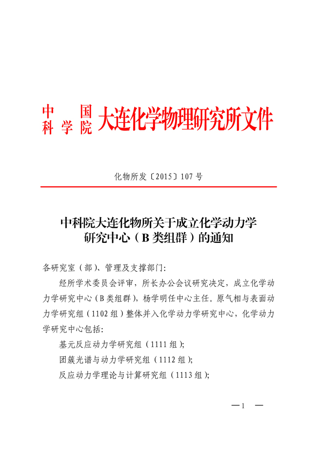 中科院大连化物所关于成立化学动力学研究中心(B类组群)的通知