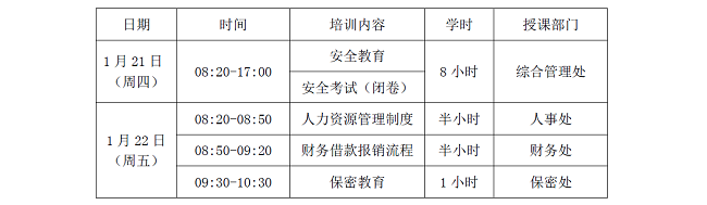 所有新入所人员均需参加入所安全、保密培训,不得以任何理由缺席。