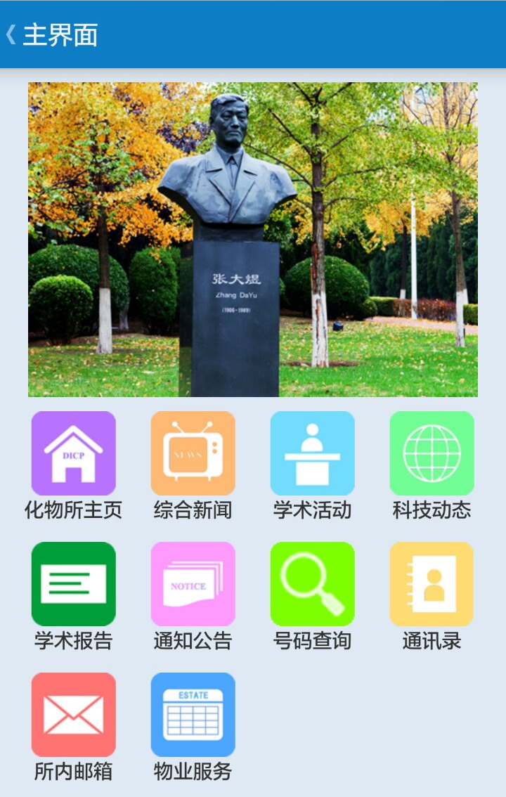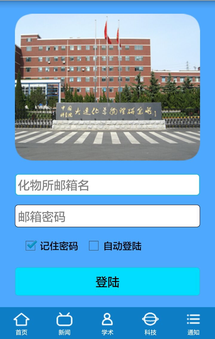 进入大连化物所手机移动办公系统登陆界面,如图1所示。用户使用所内邮箱成功登陆后,进入系统主界面,如图2所示。