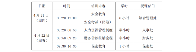 人事处将为所有新入所人员建立《培训记录卡》,记录参加安全及保密培训情况。