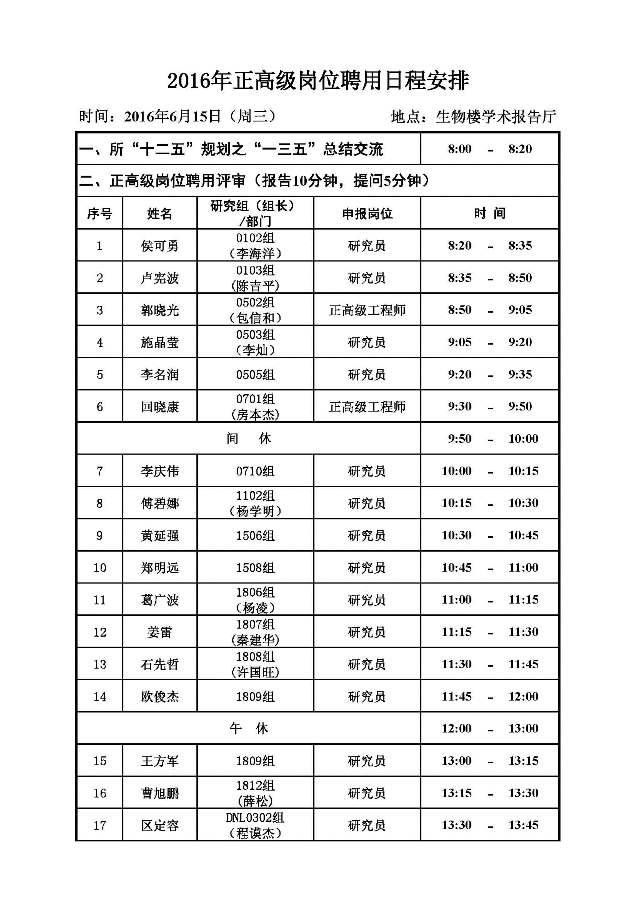 兹定于6月15日(周三)在生物楼学术报告厅召开所正高级岗位聘用答辩会。