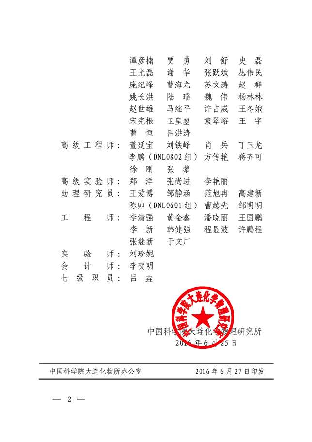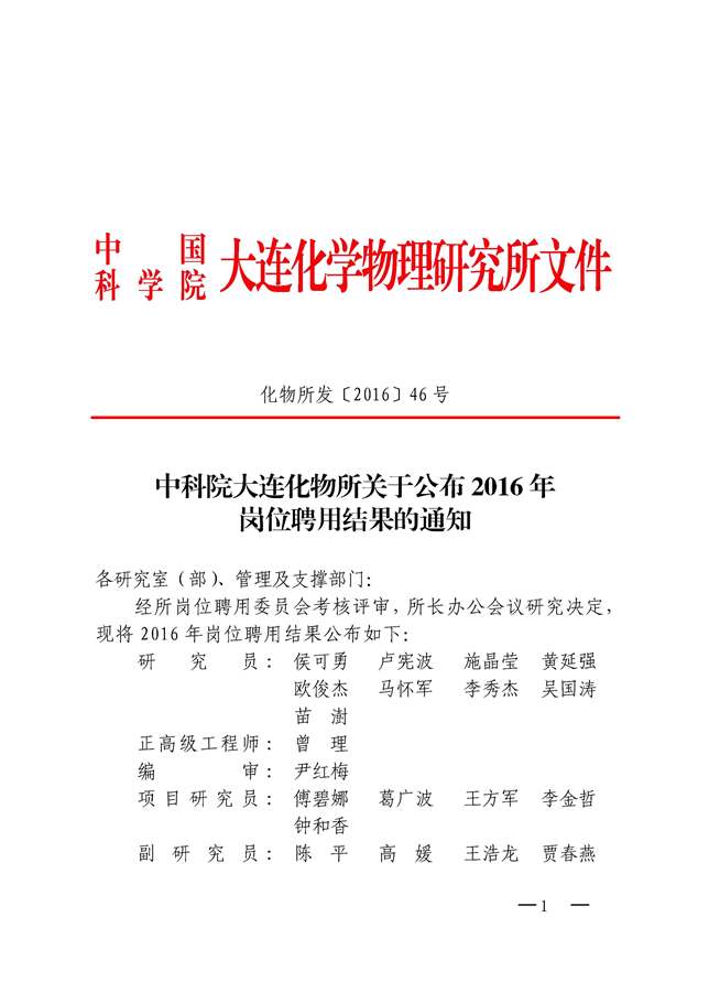 中科院大连化物所关于公布2016年岗位聘用结果的通知