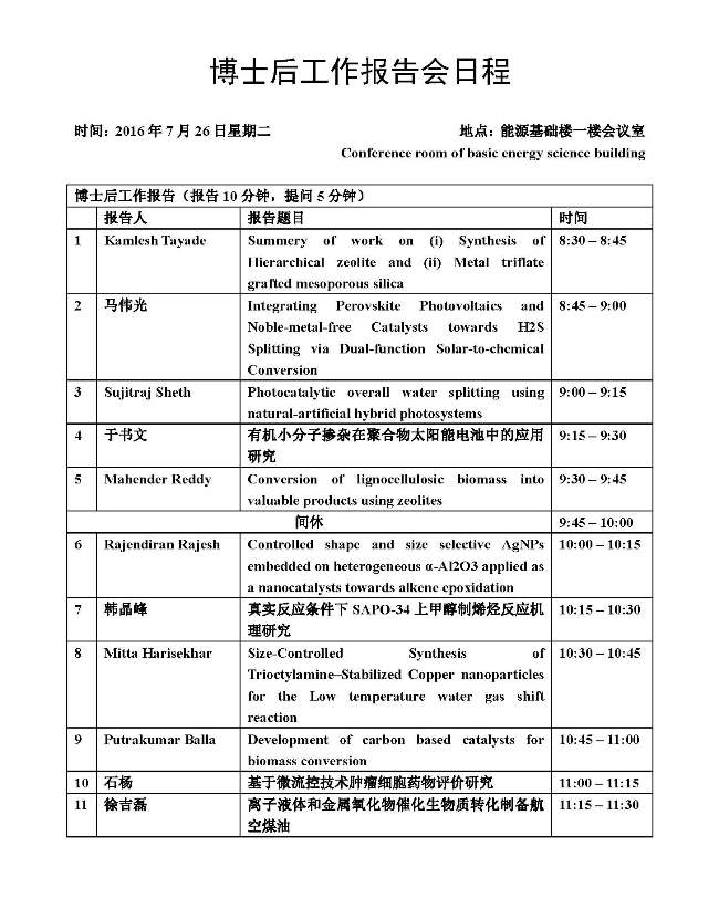 兹定于7月26日(周二)8:20至11:30在能源基础楼一楼会议室举行2016年度博士后工作报告会,会议将组织评选2016年度“优秀博士后工作报告奖”,欢迎所内职工及研究生参加。